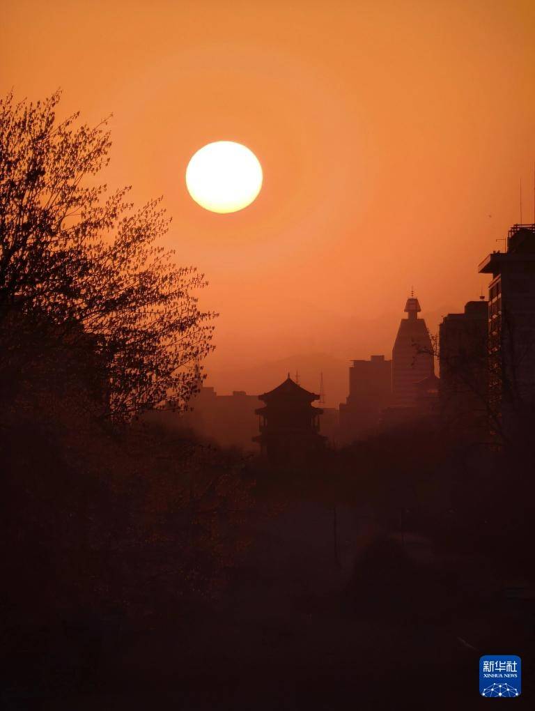 这是3月18日在北京明(ming)城墙(qiang)遗址公园(yuan)拍(pai)摄的旭日风景。