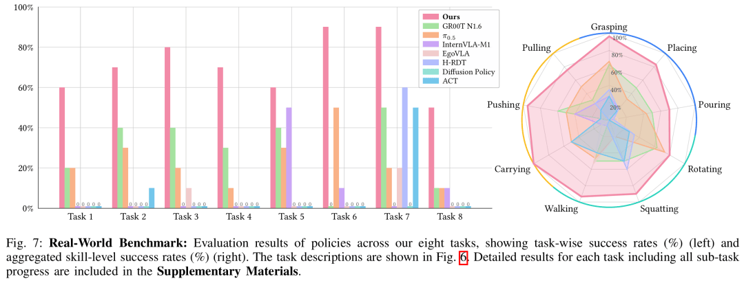 任务集:8 项真实世界长时序运动-操(cao)作(zuo)任务(如图 6),包含: