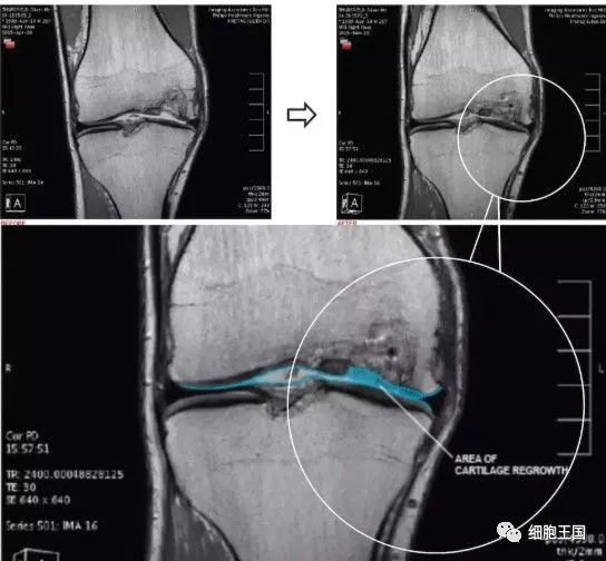 2016年,曾在《干细胞转换医学杂志STEM CELLS TRANSLATIONAL MEDICINE》上报道过,在中外学者共同参与的一项研究中,用人自身来源的软骨细胞结合生物胶原支架,治疗软骨缺损,治疗后随访12个月全部患者的临床评分得到了提高,功能得到改善,疼痛得到缓解。