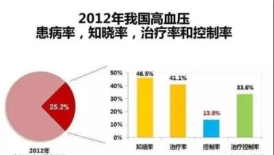 中国的高血压患病率,在1958年仅5%。近年我国成人高血压患病率已高于25.5%,每百名成年人就有 25人是高血压患者,全国心血管病人达2.9亿。
